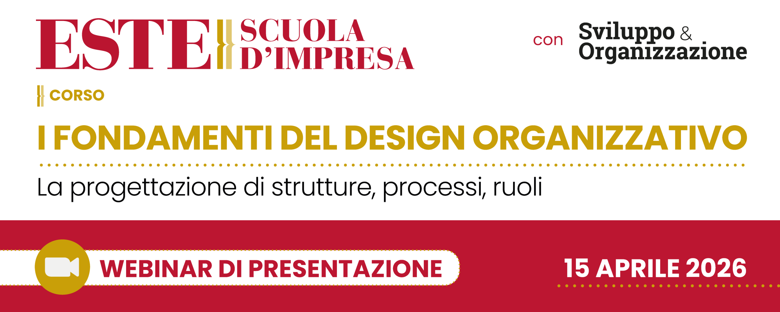 Il Webinar ha l’obiettivo di presentare il Corso “I FONDAMENTI DEL DESIGN ORGANIZZATIVO – La progettazione di Strutture, processi, ruoli”, il percorso rivolto a personale junior o senior delle Funzioni di Gestione del personale, Organizzazione, Relazioni industriali, ICT e consulenti del lavoro.
